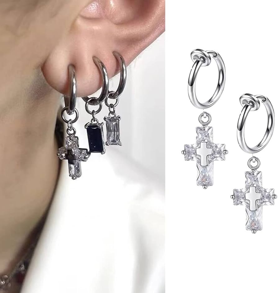 Amazon.com: 2024 Titanium Steel Rhinestone Cross Earrings For Teen